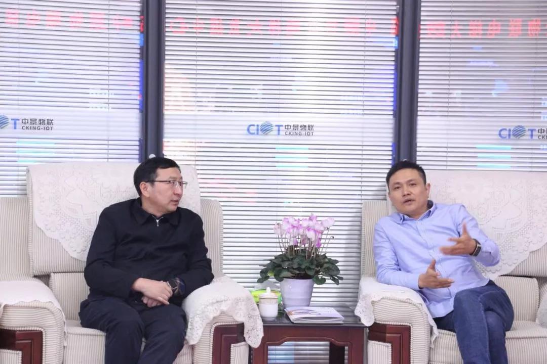 对接会结束后,贵州省信息中心主任何灏、大数据发展管理局产业融合处副处长王强一行莅临中景物联考察交流,中景物联董事长兼CEO时亮、市场营销副总经理陈聪、张旭辉陪同考察。双方就借助平台力量,汇聚物联网智慧,助力政府监管展开交流、谋求合作。