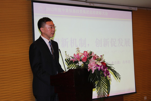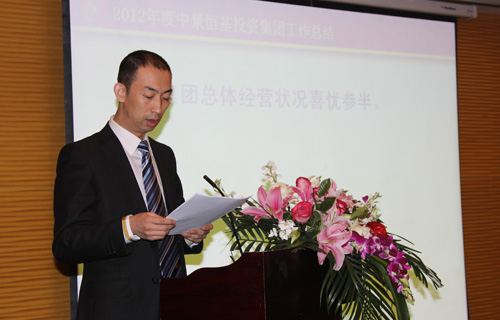 大会首先由中景恒基集团副总裁张睿对集团2012年度工作开展情况做总结报告。报告指出,过去一年集团明确发展战略和五年规划,内部管理和服务工作得到了明显的加强;在探索城市运营业务过程中,全资公司各项业务均有较快的推进。但集团其他成员企业发展不平衡,资源整合力度不够,总体经营状况喜忧参半。面对效益上没有达到预期目标,人才队伍建设滞后,资金整合水平欠缺等问题,张睿在报告中提出集团要认真地总结,在今后工作中迅速改进、提高,并明确提出了2013年是集团的“效益质量年”,新的一年集团要抓住机遇,大干快上,实现新发展。同时报告中也对集团各级领导与员工在过去一年不辞辛苦,加班加点,任劳任怨的工作精神给予肯定和表扬。