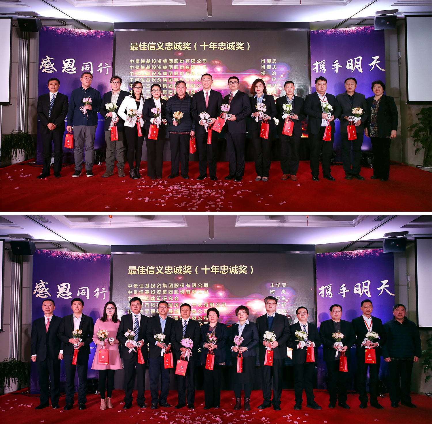 韶华不负,奋斗不停。中景恒基自2001年成立,有这样一群人见证了公司的创立与发展,他们中间有运筹帷幄的领头人,有能征敢战的管理者,有爱岗敬业的普通员工。他们言忠信、行笃敬,陪伴集团走过十几年时光。他们用忠诚的誓言和不变的承诺,为中景恒基保驾护航,陪伴着中景恒基一步步成长与壮大。为了感恩他们十年如一日的陪伴,为了纪念他们用辛勤与汗水浇铸企业的永恒,集团特别设立最佳信义忠诚奖,向在集团奋斗超过十年的同仁们表示衷心的感谢。