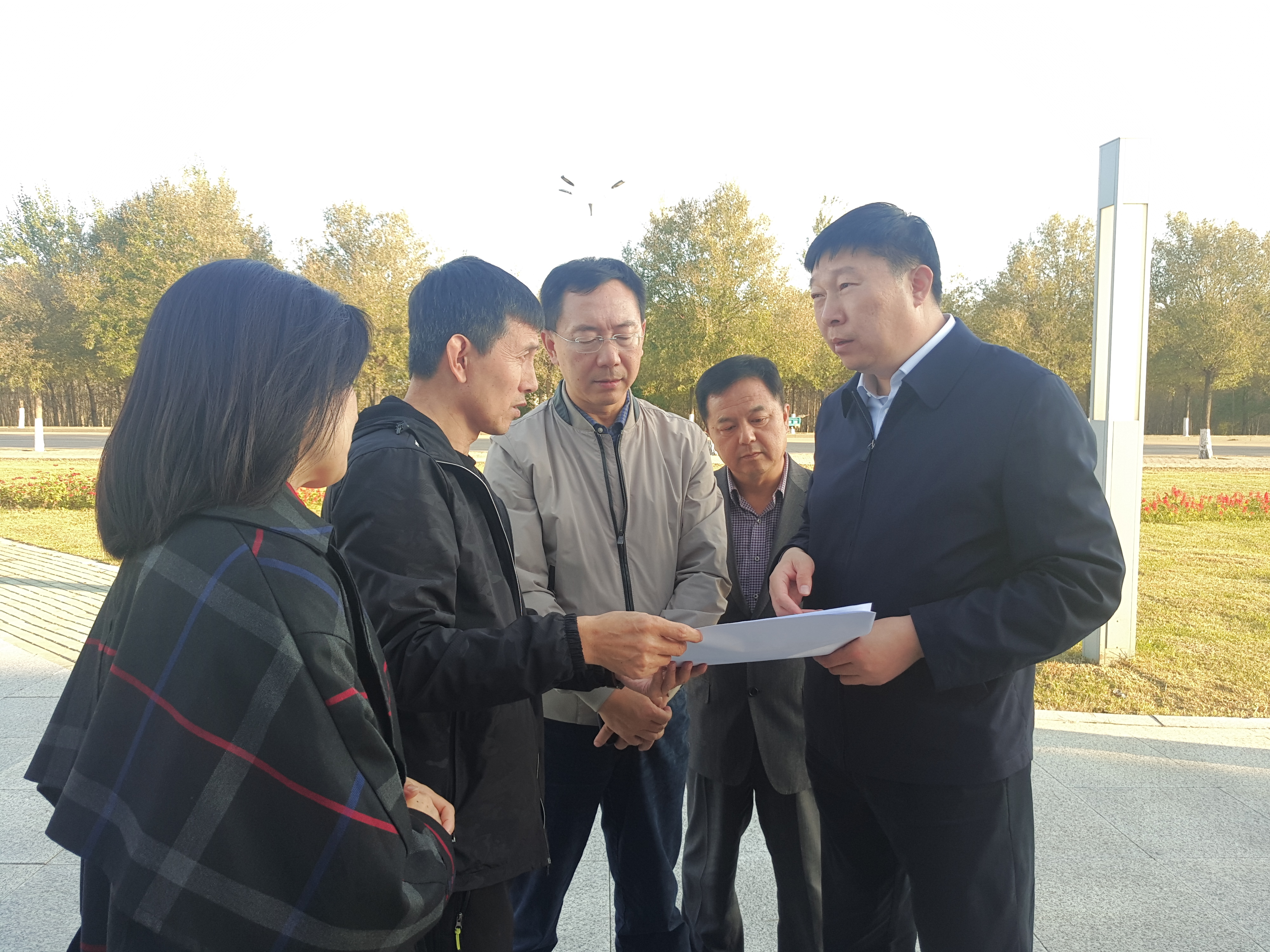 肖厚忠董事长(左三)和王金书记(右一)探讨建设蓝图