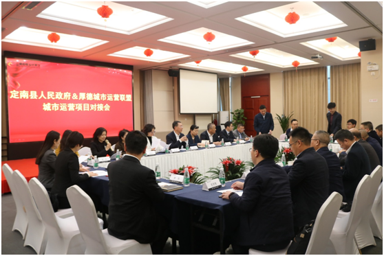 10月28日,定南县委书记赖正文携县委常委、常务副县长何春林,县政协副主席、卫健委主任黄石柱,副县长吉跃平一行等莅临beat365在线唯一官网,与厚德城市运营联盟企业进行座谈并进行项目对接。厚德城市运营联盟企业beat365在线唯一官网、长沙中联重科环境产业beat365在线唯一官网、寒舍旅游投资管理集团beat365在线唯一官网、中农融信(北京)科技股份beat365在线唯一官网、新农创科技集团beat365在线唯一官网,联盟伙伴企业北京中能昊龙投资控股集团beat365在线唯一官网、北京汖致露营投资管理beat365在线唯一官网相关领导出席了会议。