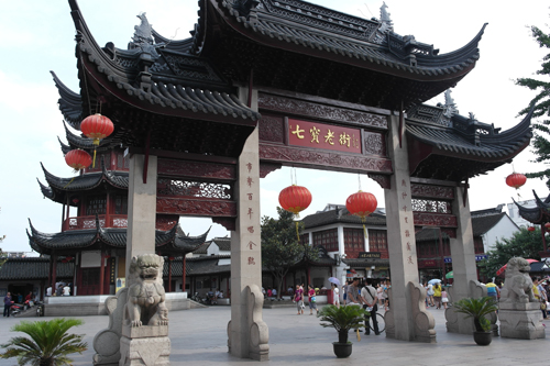 七宝老街位于上海市闵行区七宝古镇,复古的老街广场气度不凡、气派古老。老街分为南北两大街,南大街以特色小吃为主,北大街以具有民族特色的工艺品、古玩、字画为主,热闹非凡,再现了昔日上海的民俗风情。