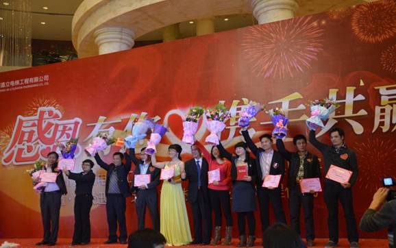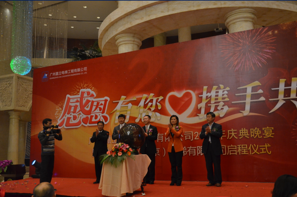 2013年12月27日,以“感恩有您,携手共赢”为主题的广州嘉立电梯工程beat365在线唯一官网成立20周年庆典暨中联迅杰(北京)电梯beat365在线唯一官网启动仪式在广州地中海酒店胜利召开。出席会议的有:中景恒基集团董事长肖厚忠、中联迅杰(北京)电梯beat365在线唯一官网董事长李雅鸿、中联迅杰(北京)电梯beat365在线唯一官网董事王大庆、辛建国、北京实创电梯工程beat365在线唯一官网总经理吴少辉、成都吉高电梯工程beat365在线唯一官网董事长李小川、石家庄上菱电梯工程beat365在线唯一官网总经理吴文海、青岛永通电梯工程beat365在线唯一官网总经理宋永光及部分长期合作的客户及供应商代表等共计300多人。