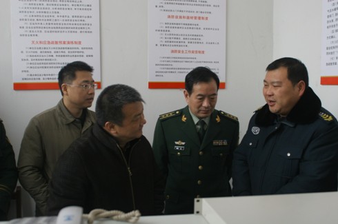 1月10日陈益新少将一行专程从南京来到连云港,视察消防安全工作,在连云港市消防支队武警官兵的陪同下对新世纪商贸城的消防安全工作进行了检查和指导。
