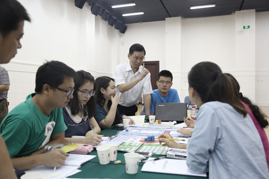 公司团队及架构建立后,汪老师通过引领员工进入一个模拟的竞争性行业,围绕形象直观的沙盘教具,实战演练模拟企业的经营管理与市场竞争。由年初支付所得税、做新一年计划、广告方案制定、更新短贷、更新应付款,到开始新的生产、交付订单、市场开发,以及年底支付设备维修款、折旧、支付租金或购买设备厂房、年底结账等等的一系列操作,强化学员的管理知识和技能,在 经历模拟企业5年的荣辱成败过程中提高战略管理能力,感悟经营决策的真谛。