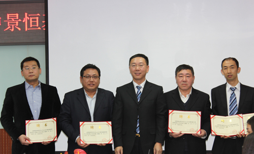 集团高级总裁时亮、张睿,副总裁桓朝晖、蔡菊接受聘书