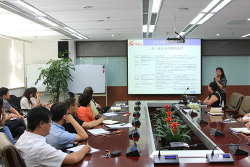 2015年6月12日,由集团人力资源部组织“新三板上市业务”培训,在集团总部九层会议室召开,与会人数近40人。此次培训邀请了北京市兰台律师事务所主任律师-王旭律师进行主讲。