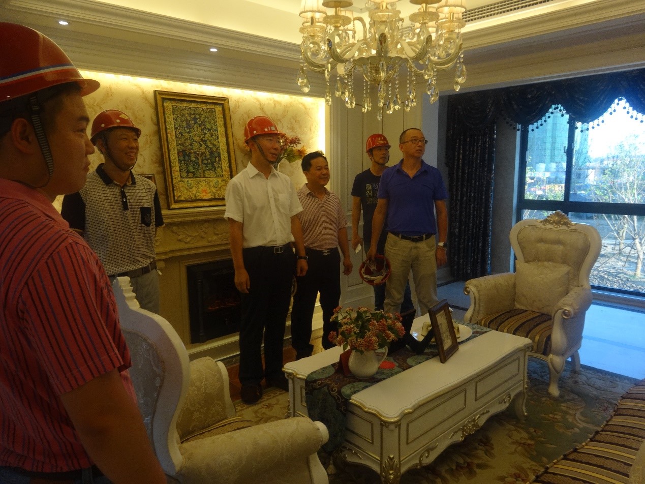 听取汇报后,肖厚忠董事长在凤祥铭居公司领导班子陪同下视察了工地样板间,并对当前工作开展情况予以肯定。施工现场工作人员紧张有序地忙碌着,呈现一派欣欣向荣的繁忙景象。