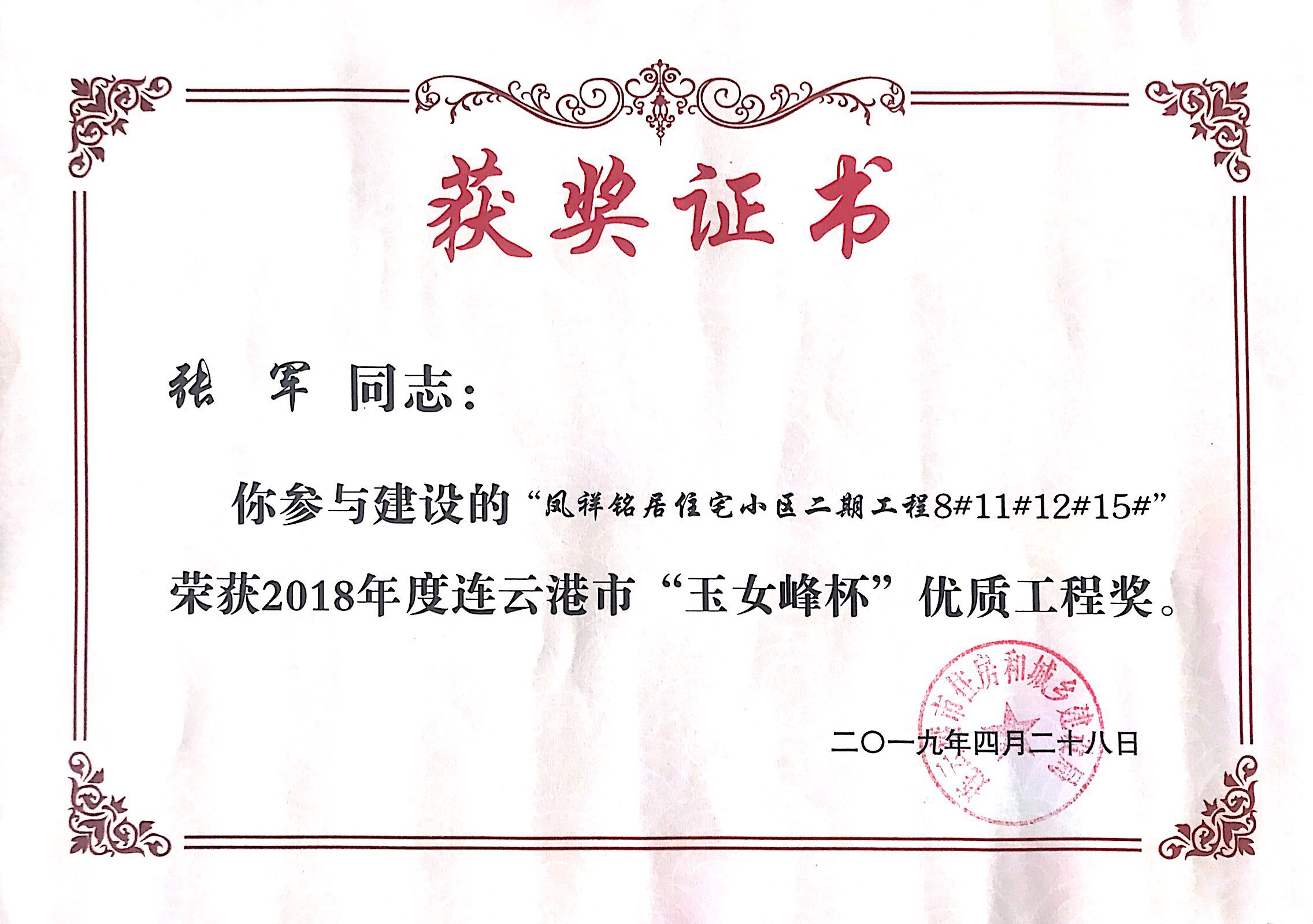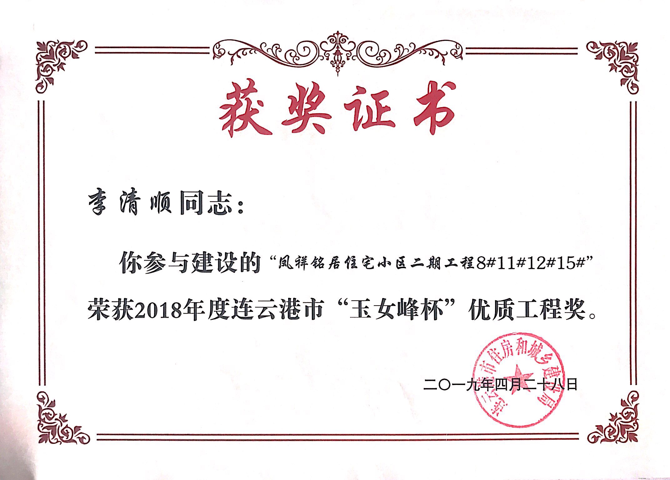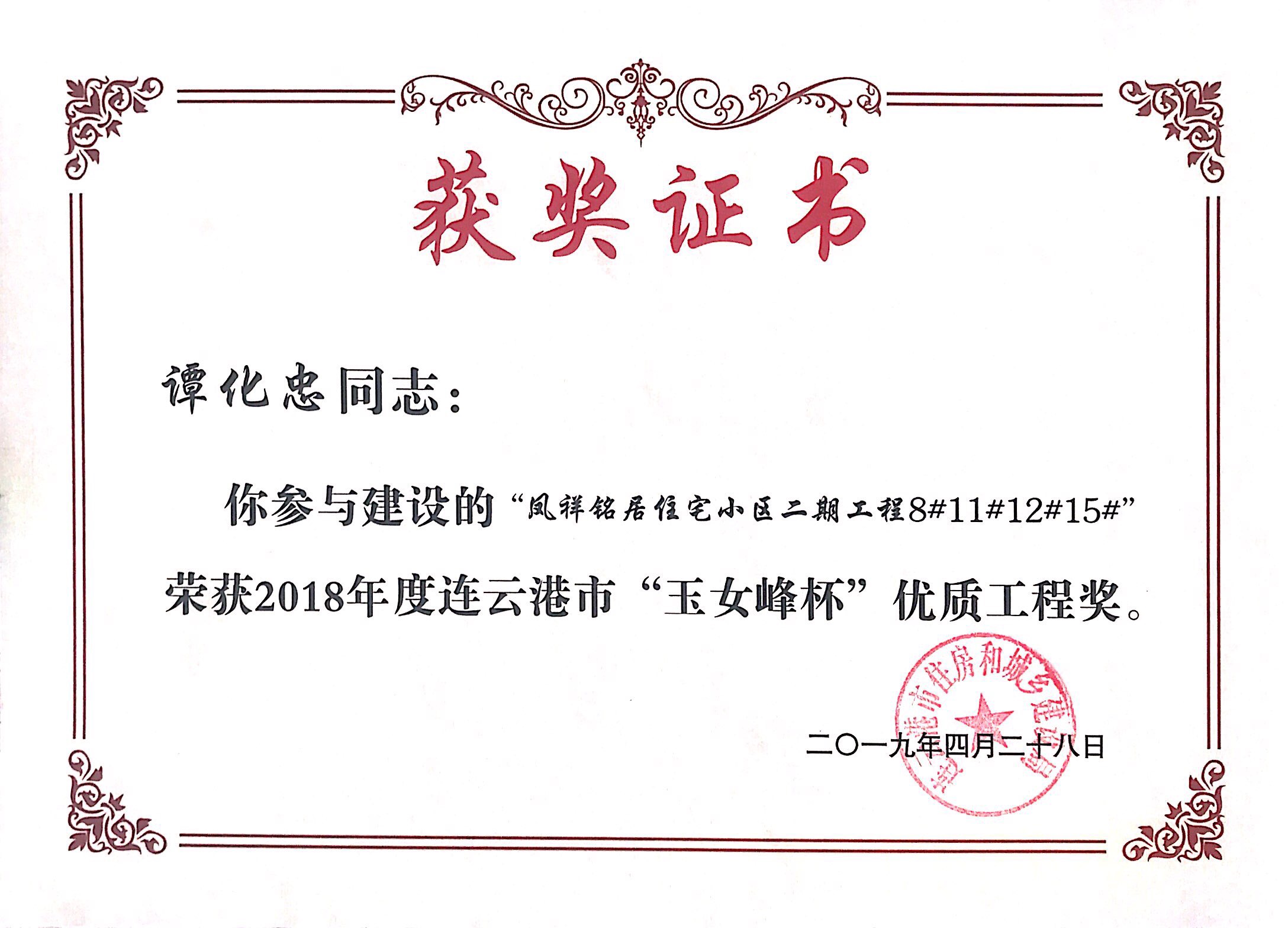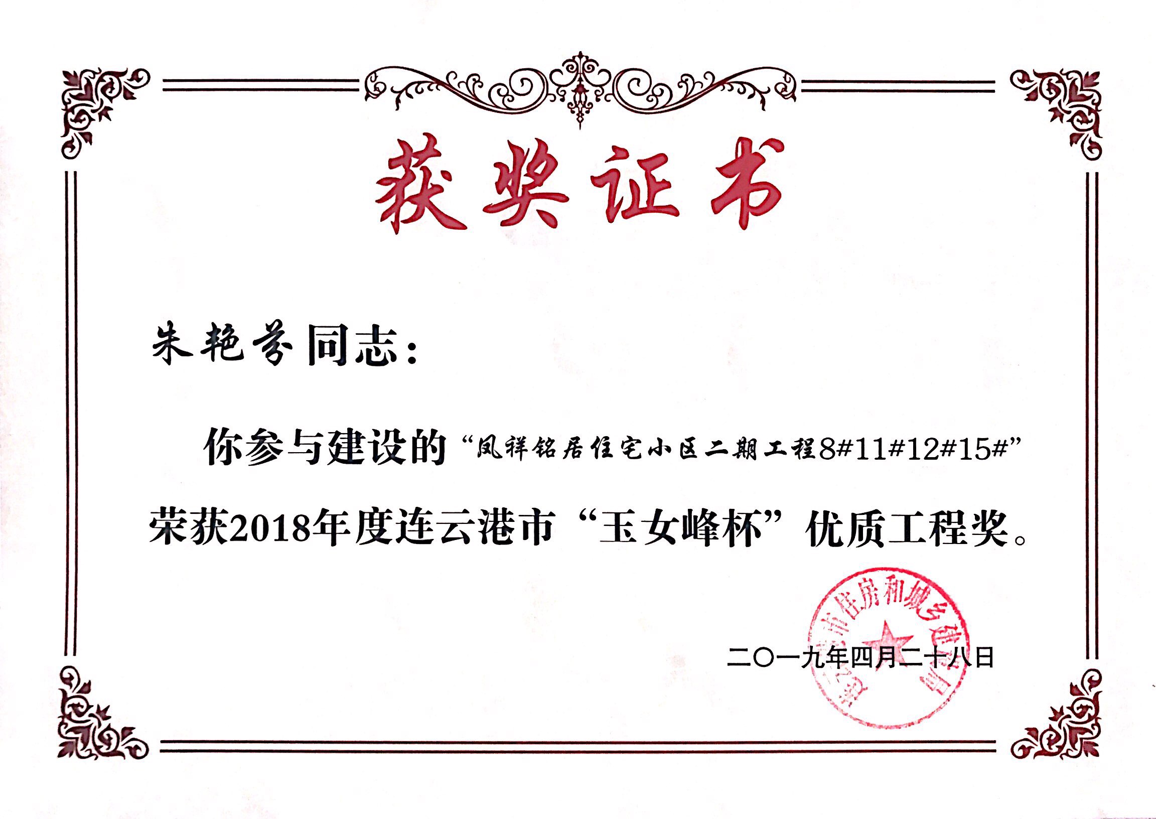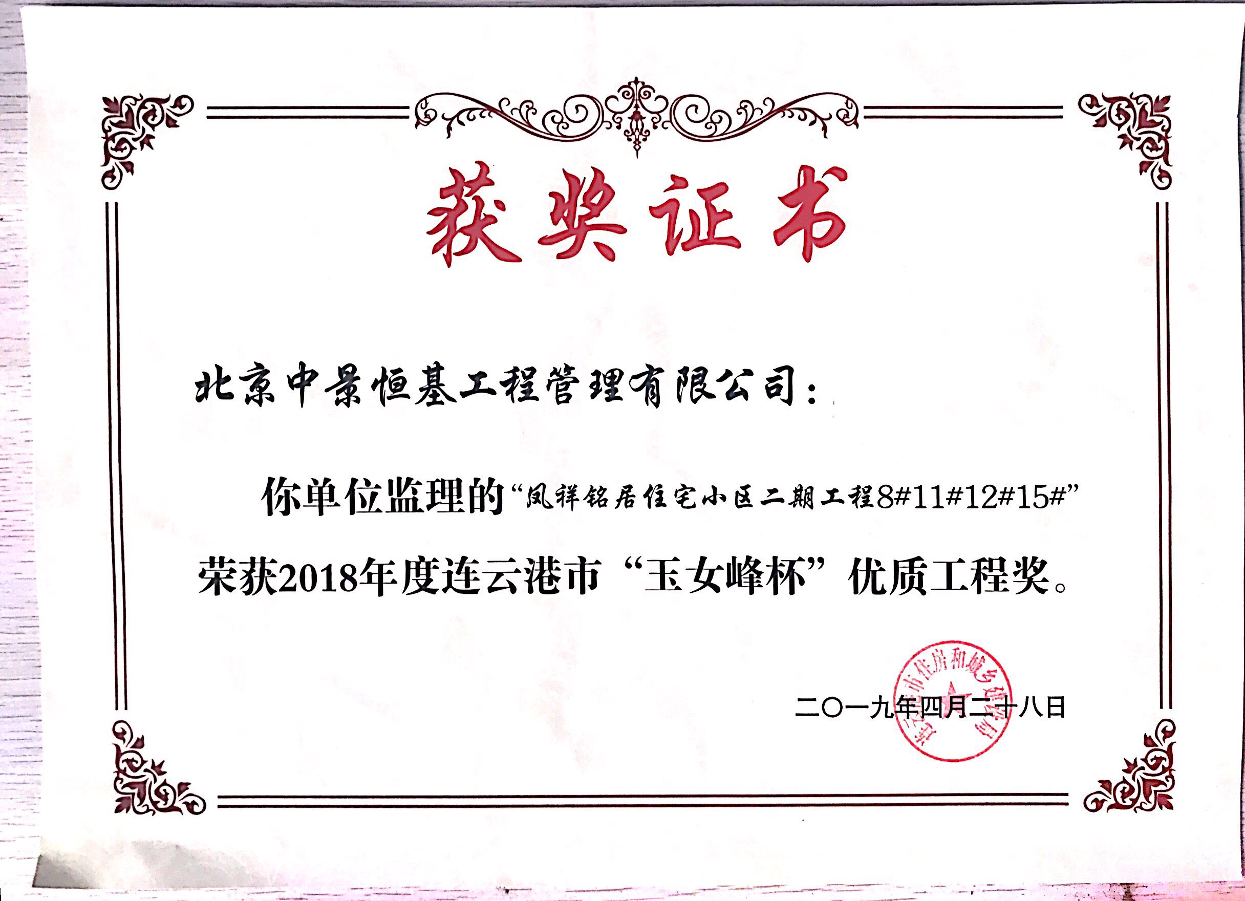 本次玉女峰杯的获得又一次体现了连云港市凤祥铭居房地产开发beat365在线唯一官网一直以来深耕港城地产行业的决心和凤祥铭居人对工程质量精益求精的优良传统。凤祥铭居公司会以此次获奖为契机,不忘初心,为港城人民呈现更多精品工程。